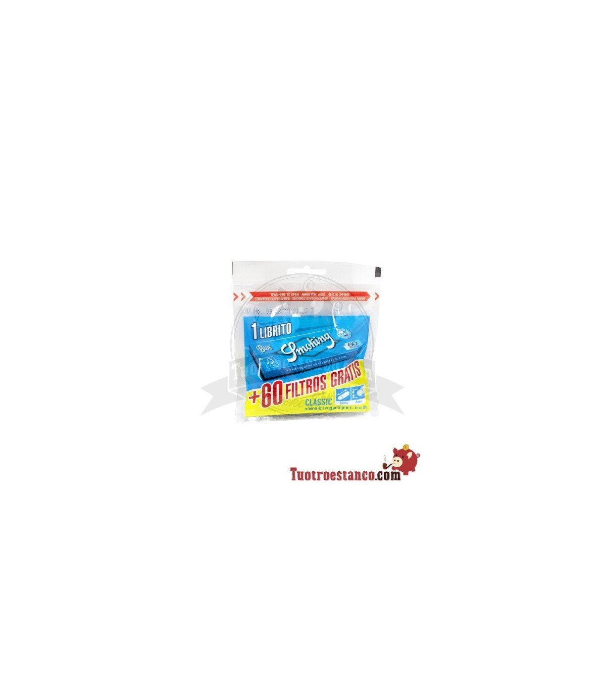 - 60 filters per bag + Smoking Nº8 Blue booklet of 60 papers