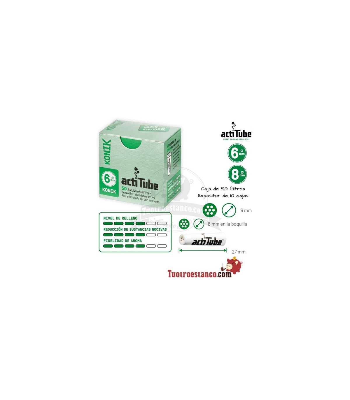 Estuche de filtros Actitube Konik de 6 mm 50 ud - 10 cajitas