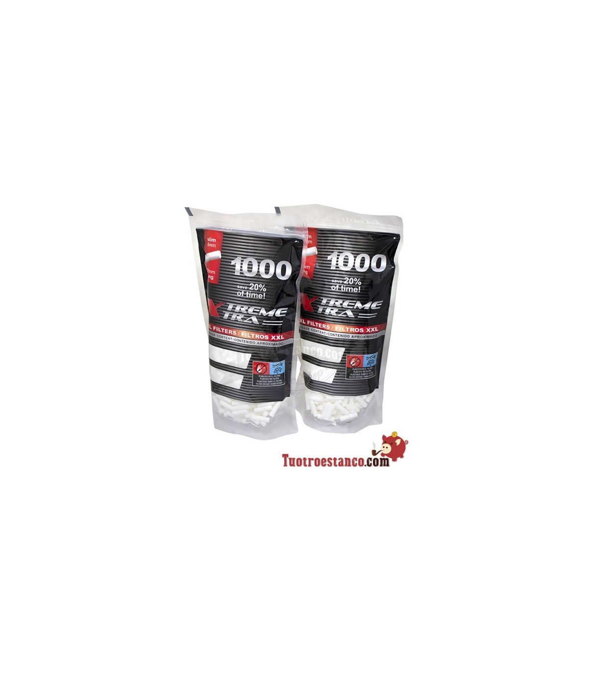 2 x Filtros X-Trem Xtra de Filtro Largo de 6 mm 1000 filtros