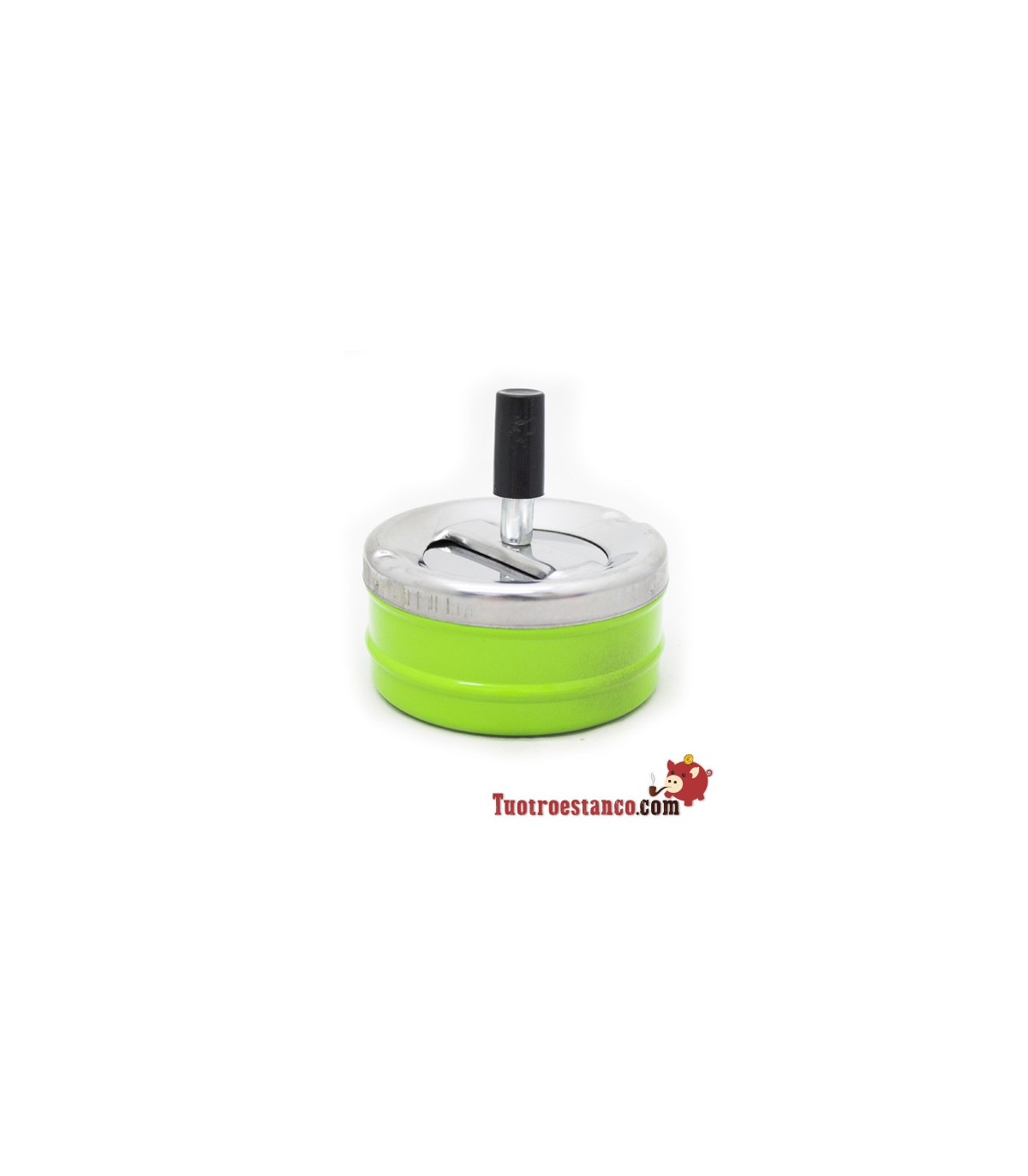 - Cendrier de type poussoir qui aide à nettoyer les cendres, de sorte que vous n’avez qu’à appuyer sur le bouton au centre lorsque vous souhaitez vider la surface du cendrier. Lorsque le bouton est enfoncé, le plateau interne tourne, laissant des mégots de cigarettes et des cendres dans le compartiment fermé.