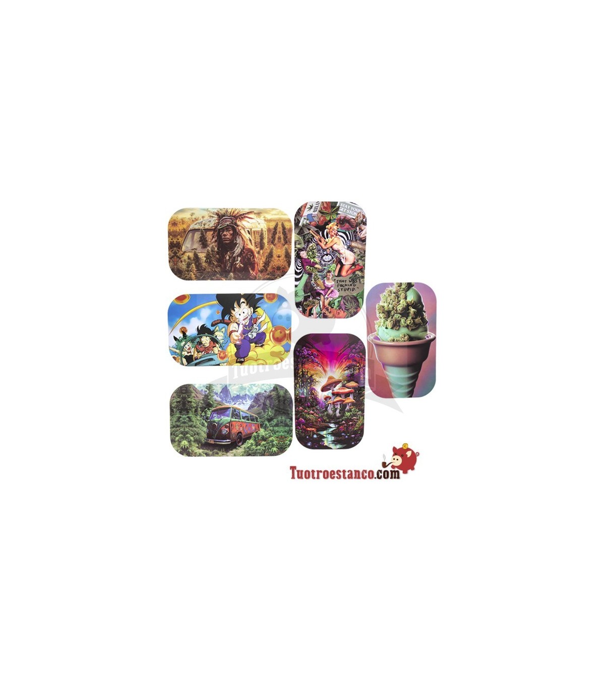 Vassoio in metallo + coperchio Scooby Doo Caratteristiche: Scooby Doo Vassoio Decorato + Coperchio Misure: 18x14 cm Materiale: Metallo Facile da pulire Ideale per non fare confusione quando si fanno le sigarette...