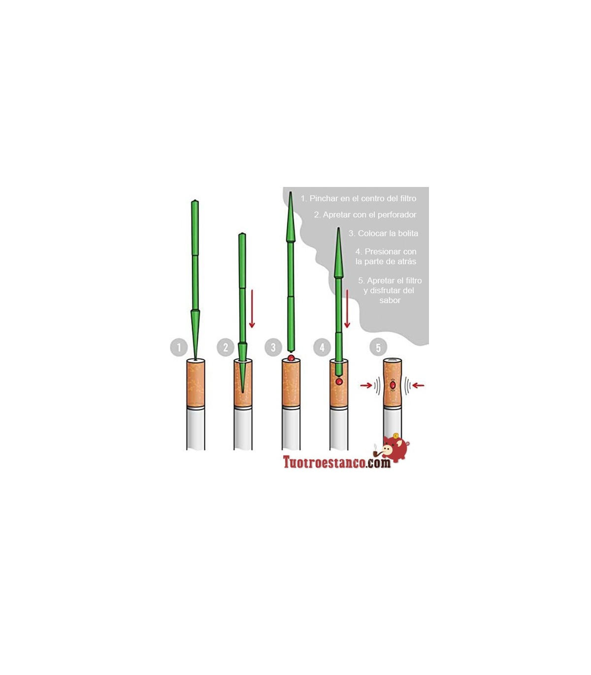 Bolitas Frutta Sandia 100 unidades -Cápsula de sabor a Mango para insertar en el filtro utilizando el pequeño insertador de plástico incluido en el paquete. Con un lado del aplicador se realiza el agujero en el filtro...