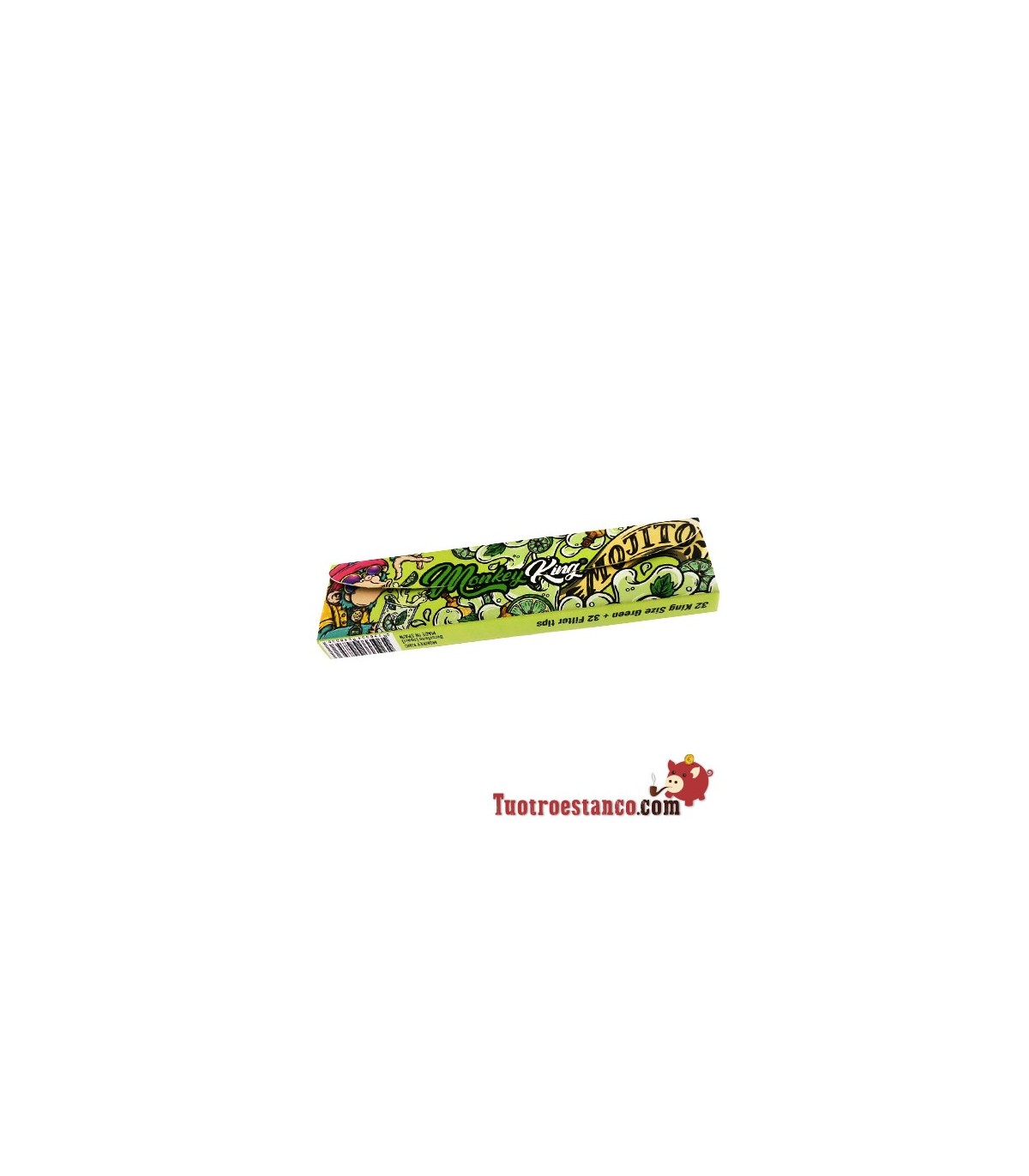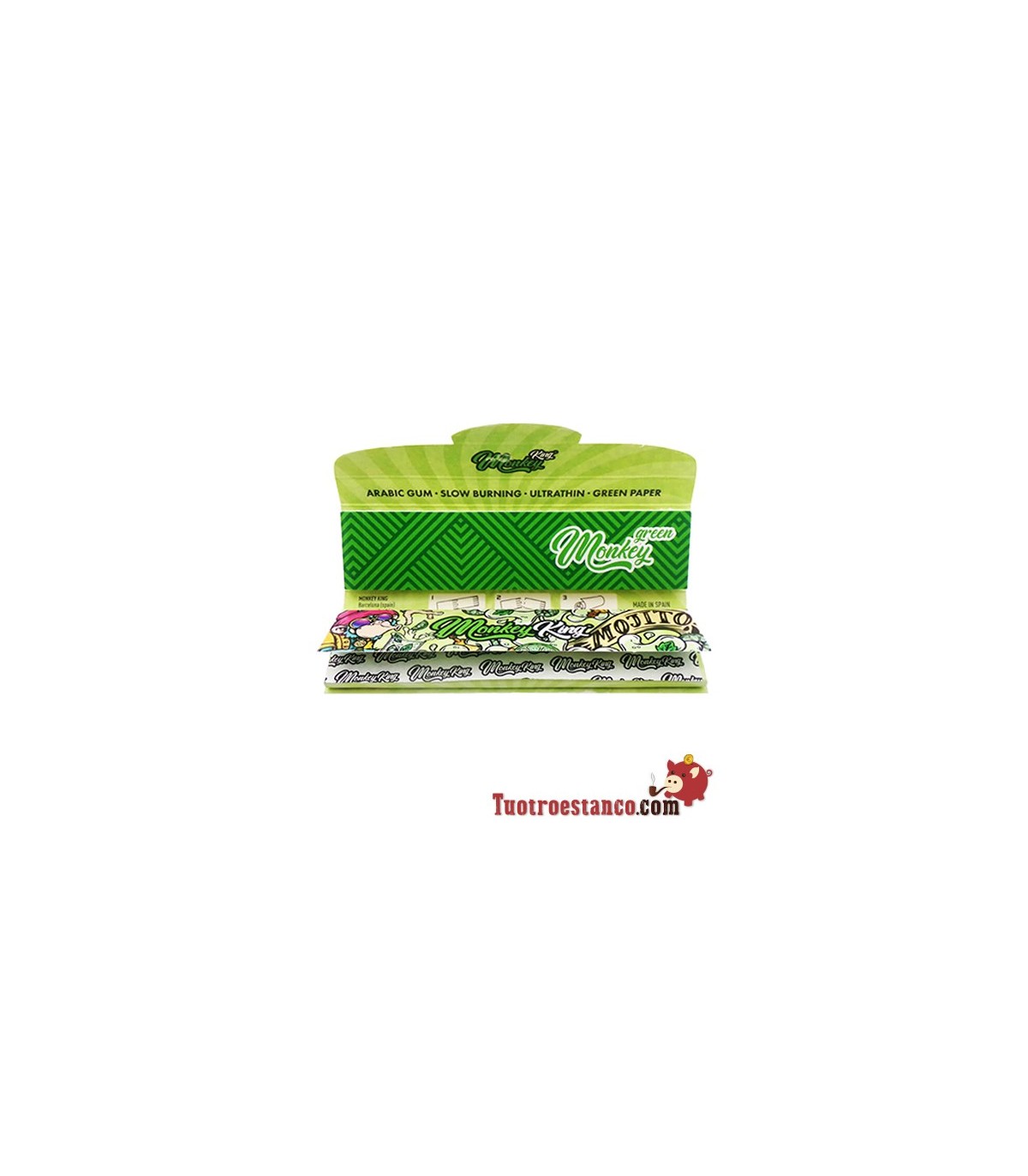 Papel Monkey King Size Slim de 110 mm Características: - 32 papeles- Papel King Size Ultra fino - Papel de 14gr. Quemado lento- Goma Arábiga Natural- Medidas 109 mm x 44 mm- Cada librito va decorado con un diseño...